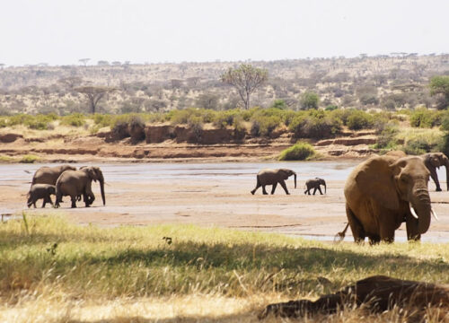 The Ewaso Nyiro River is the lifeline for the people and animals in the area and crocodile share the banks with elephant, lion, buffalo and even the elusive leopard. All meals and overnight at your lodge.