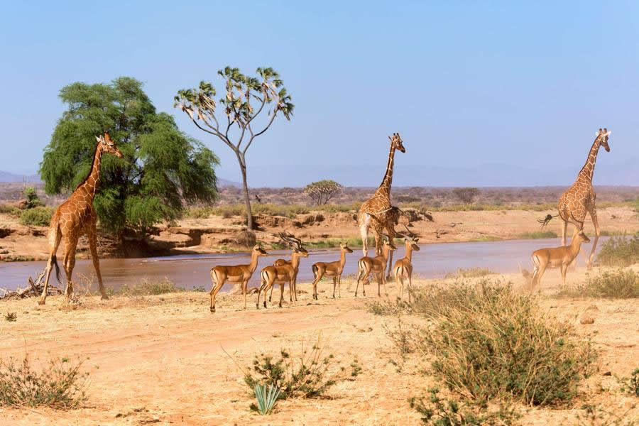 The Samburu National Reserve, located in the northern shadow of Mount Kenya, is a land of contrasts. Here, you can witness Kenya’s diverse and beautiful wildlife and culture firsthand and learn how Kenya’s conservancies sustainably blend tourism, conservation, and communities.